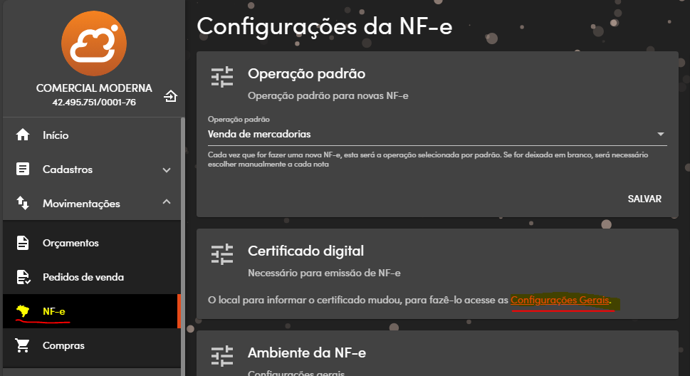 CERTIFICADO DIGITAL – GDOOR WEB Por Fransini OliveiraEm GDOORPostou outubro 9, 20230 comentário(s) Gweb> Movimentações> NF-e> Configurações da NF-e> Configurações> Certificado Digital