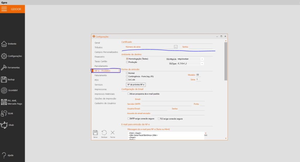 Configuração Certificado Digital – GDOOR Desktop Como podemos lhe ajudar? Pesquisar < Todos os tópicos Principal Gdoor Configuração Certificado Digital - GDOOR Desktop Imprimir Configuração Certificado Digital – GDOOR Desktop Postadooutubro 2, 2023 Atualizadooutubro 2, 2023 PorFransini Oliveira Gdoor Desktop > Configurações > NF-e Produtos